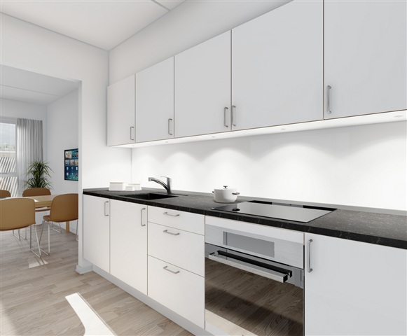 Denne ejendom er placeret midt i byen på gågaden med både BROEN og banegården som umiddelbare naboer, hvilket sikrer en helt central beliggenhed. Byggeriet lægger vægt på høj kvalitet og konsekvent brug af førsteklasses materialer, og samtlige lejligheder har franske altaner, som giver en fin udsigt over livet på Kongensgade.Adgangen til lejlighederne sker via en svalegang på husets bagside, hvor man også kan finde bygningens store fælles tagterrasse. I alle boliger er det muligt at tilslutte en vaskemaskine, og der er desuden et generøst kælderrum til rådighed samt plads til cykelparkering og elevator i ejendommen. Denne bolig bør ses for at blive rigtigt værdsat.
