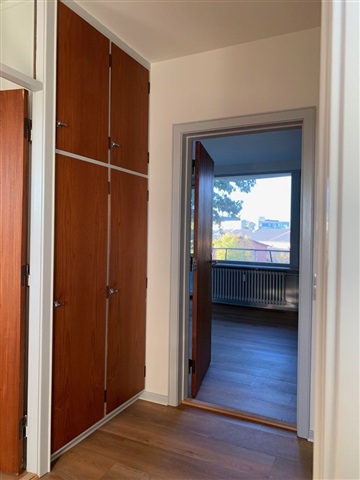 I centrum af Herning findes denne istandsatte 2-værelses sygeplejebolig, hvor renoveringen elegant kombinerer det traditionelle håndværk og de oprindelige materialer med moderne krav til funktionalitet. Teaktræslåger pryder de indbyggede skabe både i gangarealer og værelser, og de oprindelige gulve er bevaret i badeværelserne, hvor badekar, hvor de stadig er til stede, suppleres af en kombination af bad og brus. Køkkenet er nyt og udstyret med opvaskemaskine, kølefryseskab, indbygningsovn samt kogeplader.Boligens private altan er orienteret mod syd og vest, hvilket sikrer godt lysindfald. Til ejendommen hører desuden gode parkeringsmuligheder for beboernes biler, mens kælderen rummer faciliteter såsom cykelparkering, vaskerum samt et personligt depotrum. Det må bemærkes, at det ikke er tilladt at holde husdyr i denne lejlighed. Fotografierne kan stamme fra en anden lejlighed med tilsvarende indretning.