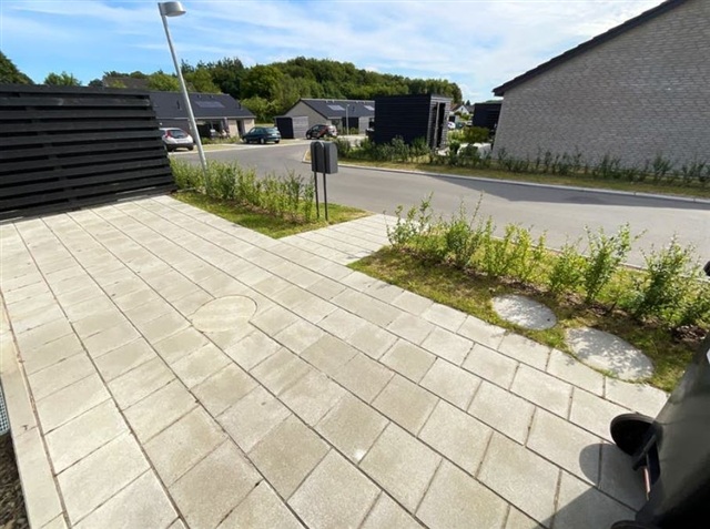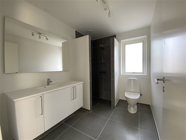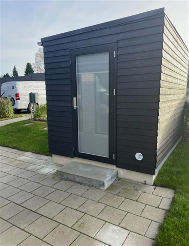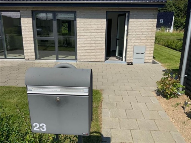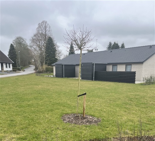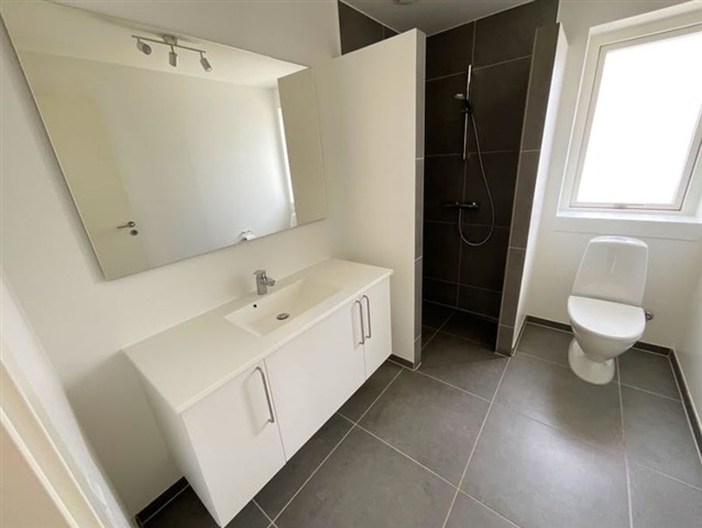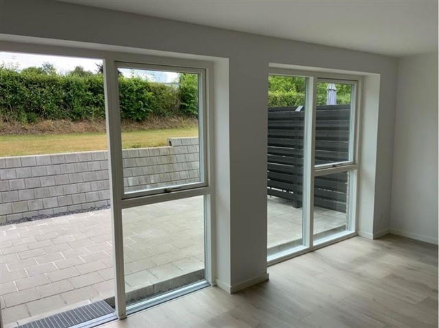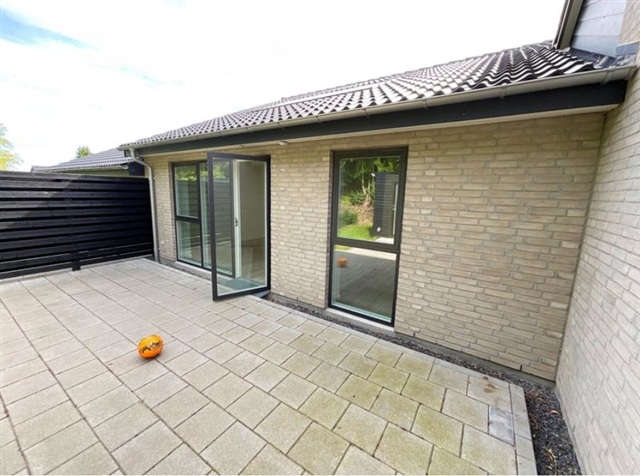 Denne bolig passer særdeles godt til enlige eller par, som søger et nutidigt og funktionelt rækkehus, der inkluderer en privat terrasse og en tilhørende have. Boligen indeholder en entré med bryggers, et åbent køkkenalrum kombineret med stue, et soveværelse med indbyggede skabe, yderligere et værelse samt et badeværelse. Derudover følger et eget redskabsskur med på 7 m². Haven og terrassen tilhører boligen, og der er fælles parkeringsmuligheder i området. Al forbrug betales direkte til forsyningsselskaberne.Rækkehuset fremstår lyst og åbent med et stort køkken/alrum, hvor inventaret er fra HTH inklusive en glasstænkeplade bag kogesektionen for nem rengøring. Køkken/alrummet glider i ét med stuen, som via en terrassedør har udgang til både have og terrasse. Værelserne er regulære børneværelser, og soveværelset er udstyret med faste garderobeskabe. Gulvene i køkken/alrum, stue og værelser er beklædt med egeplanklaminat, mens entre, bryggers samt badeværelse har store mørkegrå klinker i formatet 60x60 cm. Indvendigt er vægge og lofter glatte og hvide, og træværket er hvidlakeret. Dørene er ligeledes glatte og hvide med rustfri greb, og er installeret uden dørtrin, så betjeningen bliver optimal. Vindueskarmene er muret og hvidt vandskurede.