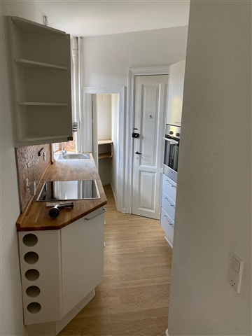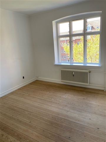 I en flot rødstensejendom beliggende i et særdeles attraktivt område udbydes en 2-værelses lejlighed på 57 m² til leje. Ejendommen ligger i det eftertragtede kvarter omkring Dr. Lassens Gade, med kort afstand til Banegården.Lejligheden består af en stue, et soveværelse samt en mindre fordelingsgang, hvilket gør den velegnet til at dele mellem flere beboere. Køkkenet er lyst og udstyret med keramisk komfur, emhætte, kombineret køle- og fryseskab samt opvaskemaskine. Herfra er der udsigt til den grønne, indbydende gårdhave gennem køkkenets vinduer. De store vinduespartier i boligen sikrer et behageligt og naturligt lysindfald, der bidrager til en indbydende atmosfære.