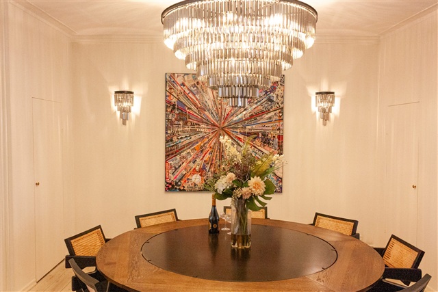 Den adskilte spisestue er indrettet med rigelig plads til større selskaber, mens en smuk lysekrone over spisebordet tilfører en eksklusiv og herskabelig stemning, som gør middagsoplevelserne til noget særligt. Her opfordres til lange, gode samtaler i flotte og sofistikerede omgivelser. Køkkenet fremstår charmerende og velholdt med en varm atmosfære, hvor funktion og æstetik er afstemt. Badeværelset følger samme stil med kvalitetsmaterialer og en rolig, luksuriøs stemning.