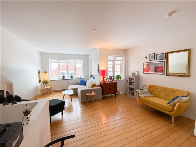 Ejendommen byder også på fælles faciliteter, som inkluderer et depotrum, et tørrerum samt en stor, velplejet fælleshave, der deles med to andre lejligheder. Denne bolig henvender sig til dig, der ønsker et lyst og moderne hjem, der er indflytningsklart med plads til både dagligdag og hyggelige stunder.