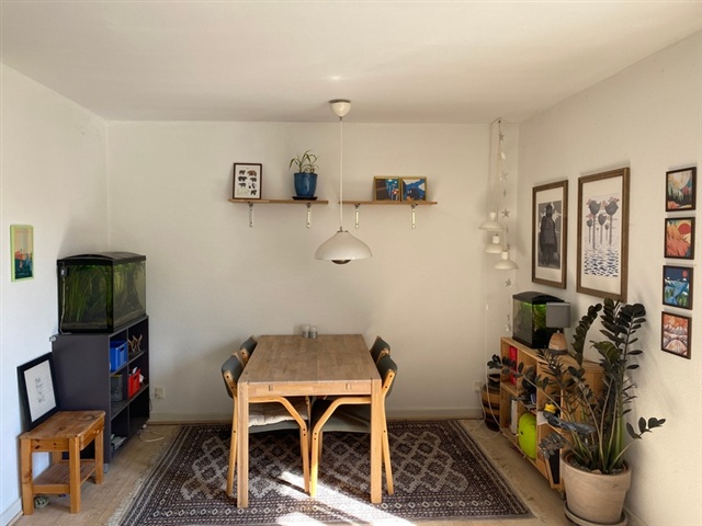 Lejligheden, som er velegnet til delebo, indeholder to store og lyse værelser samt et separat køkken, der er udstyret med køle-/fryseskab, komfur og emhætte. Boligen har desuden en funktionel entré og fordelingsgang, hvilket skaber en praktisk indretning, samt et badeværelse med bruseniche. Bemærk, at billederne stammer fra en tilsvarende lejlighed i samme ejendom.Under ejendommen findes fælles vaskefaciliteter, cykelparkering og opbevaringsrum. Desuden er der adgang til et fælles gårdmiljø med en hyggelig atmosfære. Boligen er beliggende i et grønt område nær Aarhus Universitet samt indkøbsmuligheder. Der er også gode forbindelser med offentlig transport, herunder letbanen og busser, som kører tæt forbi.