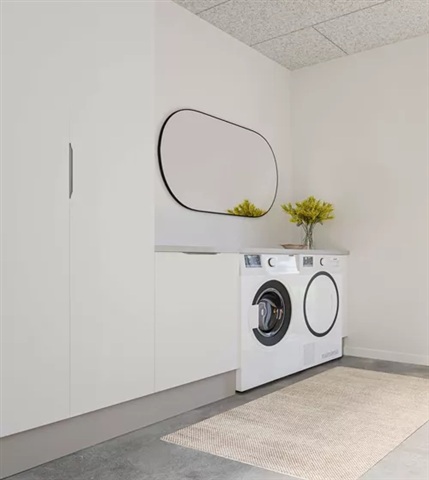 Entréen fremstår rummelig med plads til opbevaring af overtøj og sko, og her er vaskemaskine og tørretumbler allerede installeret. Udendørs hører der en privat terrasse til boligen, som rummer plads til havemøbler, krukker og øvrigt udendørsliv. Foran huset findes desuden et privat skur samt et flisebelagt område, der blandt andet kan benyttes til opstilling af cykler eller et mindre cafébord.
