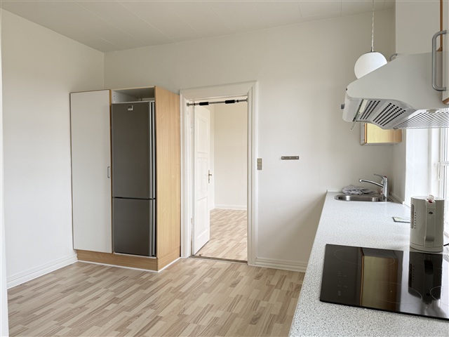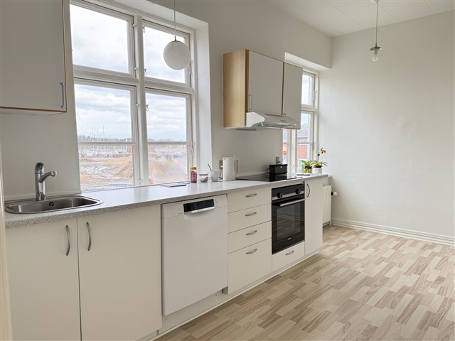 Denne flotte og optimalt indrettede lejlighed med tre værelser udlejes nu på Havnegade i Mariager. Boligen kombinerer en enestående udsigt over vandet med en central placering i byen, hvor du befinder dig tæt på både havnen, fjorden og det charmerende bymiljø.Indenfor mødes du af en indbydende entré, som leder videre til et rummeligt og veludstyret køkken, der byder på udsigt mod vandet. Lejlighedens lyse og store stue giver mulighed for flere forskellige indretningsløsninger, og der er plads til både et sofaarrangement og et spisebord. Udover dette finder du et praktisk opbevaringsrum med gode skabsfaciliteter samt to næsten ens værelser med god plads, som kan anvendes som soveværelse, kontor eller til gæsteophold efter behov. Badeværelset er af en god størrelse og funktionelt indrettet med en separat bruseniche. Midt i lejligheden er der desuden installeret vaskemaskine og tørretumbler, hvilket bidrager til en nem og bekvem hverdag.