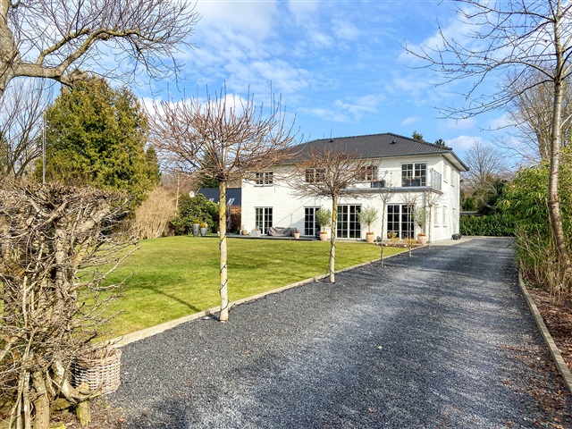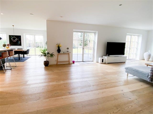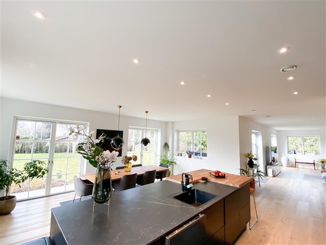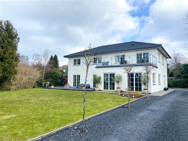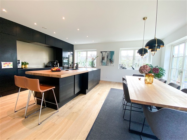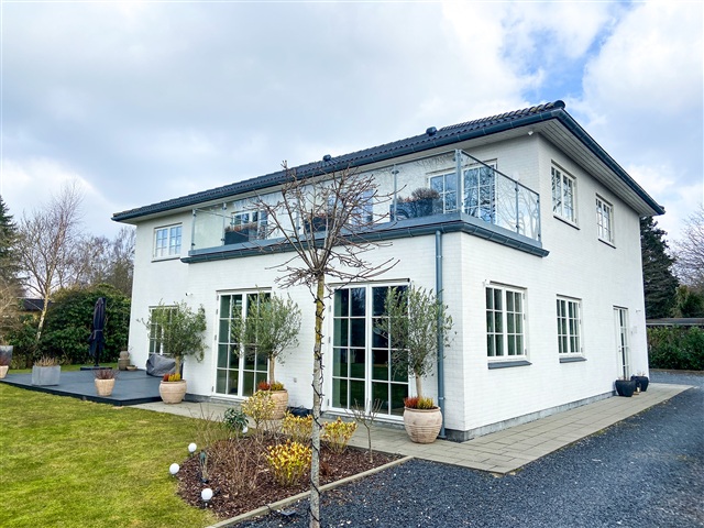 Denne rummelige og moderne ejendom, opført i 2019, breder sig over 321 kvadratmeter fordelt på to hele plan og er beliggende på en nemt vedligeholdt grund på 1.573 kvadratmeter. Her får man den klassiske palæstil kombineret med tidssvarende komfort, herunder gulvvarme, tre badeværelser, et master bedroom med walk-in-closet samt en dobbelcarport med elbil-oplader - så huset står fuldt ud klar til en komfortabel og luksuriøs tilværelse i Holte.Indretningen byder på en entré med god plads til overtøjet, to soveværelser med integrerede skabe samt et gæstebadeværelse med bruser. Endvidere finder man et bryggers udstyret med vaskemuligheder. Husets centrum er den store stue, som ligger i åben forbindelse med køkken-alrummet. Begge disse rum har direkte adgang til haven og en flot terrasse i træ. På førstesalen er der en rummelig repos, som giver adgang til en stor altan/terrasse, tre værelser med indbyggede skabe og et badeværelse med bruser. Desuden rummer denne etage et master bedroom med walk-in closet samt et stort badeværelse, der har både brus og badekar.