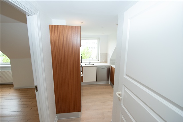 Denne lejlighed kombinerer naturligt lys med charmerende detaljer og er placeret centralt i Aalborg. Boligen står klar til indflytning og byder på en behagelig og indbydende stemning.Indgangen rummer en stor og lys entré, som straks skaber et positivt indtryk. Køkkenet er rummeligt og udstyret med moderne elementer, herunder stålgreb og rustfri hårde hvidevarer såsom opvaskemaskine, kombineret vaskemaskine og tørretumbler samt et køle- og fryseskab. Stuen er hyggelig og nem at møblere, hvilket skaber en indbydende ramme for både afslapning og samvær. De to store værelser er velegnede til dobbeltsenge og skabe, hvilket giver gode muligheder både til hvile og arbejdsplads. Badeværelset er stilfuldt med hvide fliser, en muret bruseniche og gulvvarme, der sikrer varme og komfort året rundt.