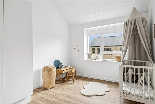 Dette moderne rækkehus i Gistrup kombinerer en fredelig placering med en bolig præget af lys og kvalitet. Her får du et hjem, der er klart til indflytning og har en behagelig stemning.Boligen er fordelt over to etager og tæller 115 m², hvilket giver tilstrækkelig plads til både familieliv og daglige aktiviteter. Ved indgangen træder man ind i en venlig entré, der leder videre til husets centrale rum: et lyst og åbent opholdsområde, som omfatter både spiseplads og stue, der harmonisk er forbundet med det moderne køkken. Køkkenet er udstyret med tidssvarende hårde hvidevarer og store vinduespartier, som sikrer godt lysindfald og åbner op mod den private terrasse, hvor udelivet kan nydes i rolige omgivelser. Stueetagen indeholder desuden et badeværelse med bruseniche samt en vaskesøjle.