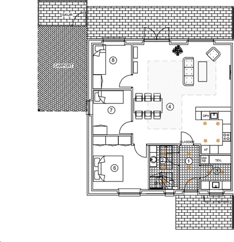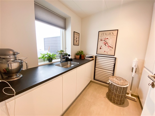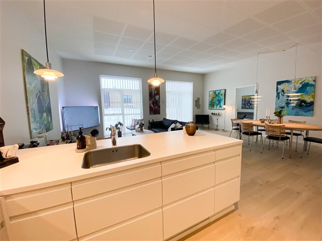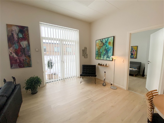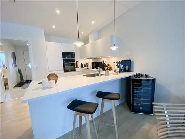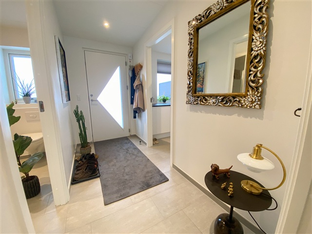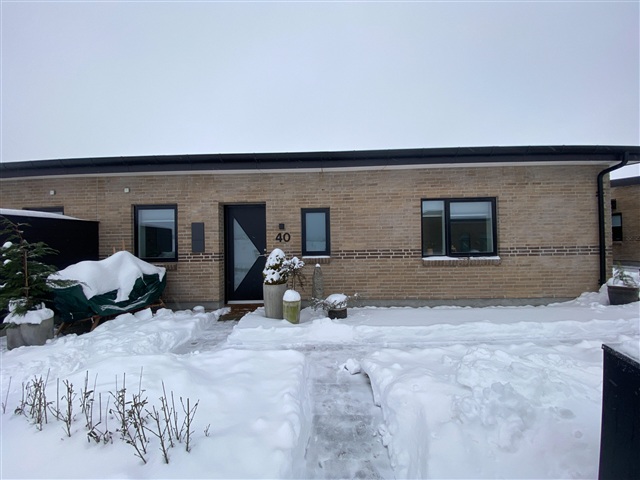 I et nyudviklet boligområde findes 34 boliger, der præges af et moderne design samt et fokus på både funktionalitet, komfort og nem adgang for alle beboere. Alle boliger er opført med niveaufri adgang fra de omkringliggende stier til entrédøren, hvilket gør dem handicapvenlige og sikrer ubesværet adgang. Hver af boligerne er tilknyttet en carport på 15 m² samt et redskabsrum på 5 m². Begge bygninger fremstår i sort Hardy Plank med et tag beklædt med pap, hvilket sammen skaber et gennemført, letvedligeholdt og stilrent udtryk. Postkassen, som også er sort og forsynet med husnummer, hører til hver enkelt bolig.Døre og vinduer er konstrueret som lavenergi-modeller med sort træ/alu udvendigt og hvidt indvendigt, hvilket kombinerer både æstetik og høj energieffektivitet. Køkkenerne er leveret af HTH og omfatter et komplet udvalg af moderne Siemens-hvidevarer: indbygningsovn med pyrolysefunktion, mikrobølgeovn, induktionskogeplade, køle-fryseskab, indbygningsopvaskemaskine samt en udtræksemhætte fra Silverline. Elektriske installationer omfatter både 240 V og 400 V med stik til antenne, EDB og bredbånd i alle opholdsrum. Derudover er der installeret ringeklokke, røgdetektor, udendørs målerkasse, gruppeafbryder samt HPFI-fejlstrømsrelæ. LED-spotbelysning er placeret i bad, toilet og entré, og installationerne er forberedt til elbilopladning i carporten, inklusive ekstra kabelføring fra boligens egen eltavle.