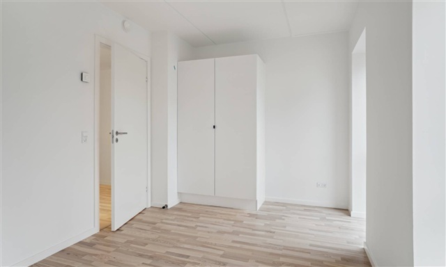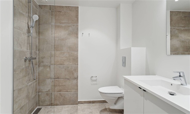 Det skal bemærkes, at de viste billeder kan stamme fra en anden lejlighed i samme ejendom, og derfor kan både indretning, placering og udsigt afvige. Valg af materialer og kvalitet svarer dog til samtlige boliger i ejendommen. Se venligst plantegningen for præcis indretning af denne lejlighed.