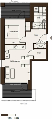 Denne lejlighed byder på et lyst og åbent køkken-alrum, der smelter sammen med stuen, hvorfra man kan træde direkte ud på en rummelig altan, der indbyder til hyggelige stunder sammen med familie og venner under åben himmel. Boligens soveværelse er generøst i størrelsen og har sin egen udgang til en separat altan. Et moderne badeværelse med separat brus er desuden en del af lejligheden, hvor der er forberedt plads til installation af vaskemaskine og eventuelt tørretumbler. Boligen fremstår lys med anvendelse af materialer i høj kvalitet, suppleret med gulvvarme og et genvex-anlæg, som sikrer et behageligt og sundt indeklima. Derudover er der et depotrum, som man har adgang til direkte fra lejligheden.Lejligheden skaber en tryg og komfortabel ramme, der passer til den, der sætter pris på kvalitetsmaterialer og en behagelig atmosfære.
