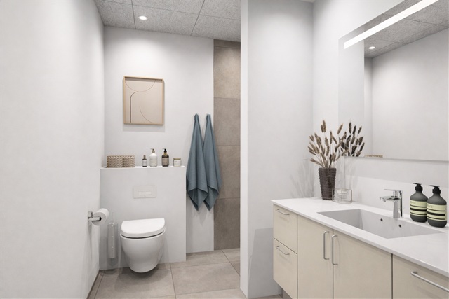 Bygning 2 rummer fire attraktive rækkehuse med et boligareal på mellem 90 og 93 m², designet til dig, der søger et moderne hjem med en gennemtænkt indretning og høj komfort til dagligdagen. Hver enkelt bolig indeholder to velproportionerede soveværelser, et HTH-køkken udstyret med et ovenlysvindue, et lyst badeværelse samt en praktisk entré, hvor både vaskemaskine og tørretumbler er integreret. Planløsningen er nøje tilrettelagt for at udnytte pladsen maksimalt, hvilket giver en boligoplevelse, der både er rummelig, funktionel og behagelig at bo i. De tilhørende terrasser vender mod vest, hvilket gør det muligt at nyde eftermiddags- og aftensolen i fredelige og private omgivelser.Bebyggelsen prydes af et elegant sedumtag, som bidrager til områdets grønne og moderne karakter. Samlet set tilbydes en boligtype, hvor æstetik, funktionalitet og komfort er nøje afstemt og hver eneste detalje er tænkt ind for at lette hverdagen. Ud over de enkelte boliger skaber dette boligområde en følelse af et fællesskab. Her handler det ikke blot om at have en adresse, men om at høre til et sted. Det fælles orangeri inviterer til at opleve årstidernes skiften gennem glasflader, hvor man kan mærke solens første stråler i foråret og dufte sensommerens varme. Områdets fælleskøkken summes af liv, når naboer mødes til fællesspisning, fejringer eller en uformel middag på en helt almindelig hverdagsaften. Værkstedet indbyder til kreativitet og praktisk fordybelse, mens fitnessrummet giver mulighed for at holde kroppen i gang, samtidig med at samtaler kan føres. Dagen kan afsluttes i saunaens rolige varme med en følelse af velvære.