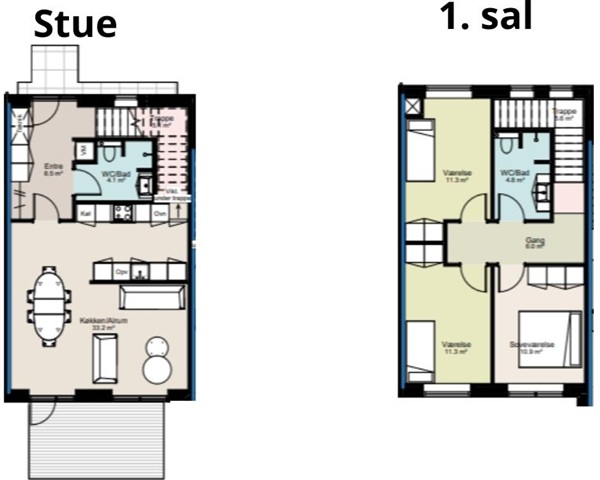 Bygning 5 omfatter syv rækkehuse, hver med et areal på mellem 120 og 126 m², fordelt over to etager. Boligerne er designet til dig, der søger en bolig med god plads og en gennemtænkt planløsning, der sikrer fleksibilitet i hverdagen samt plads til både familieliv, gæstebesøg og stille stunder derhjemme. Hver bolig er opdelt med lodrette lejlighedsskel, hvilket skaber en tydelig opdeling mellem enhederne og giver en oplevelse af et egentligt rækkehus med privat karakter. De to etager fordeler hjemmets funktioner fordelagtigt og skaber en velafbalanceret kombination af fælles opholdsrum og private områder.Hver bolig indeholder desuden to badeværelser, hvilket øger komforten og gør dagligdagen lettere. Der er direkte adgang fra boligen til en terrasse, som vender ud mod grønne fællesarealer. Det gør det muligt at nyde udendørslivet som en naturlig forlængelse af hjemmet med plads til både afslapning og hyggelige timer udenfor. Bygning 5 henvender sig til dem, der ønsker en bolig med ekstra plads, gode rammer og en kombination af komfort og en attraktiv beliggenhed.
