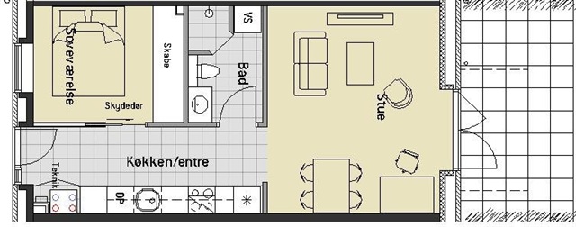 Denne lejlighed med to værelser byder på en privat terrasse og er beliggende på Bjørnevangen i et roligt og velholdt område i Odense S. Her har du let adgang til naturområder samt indkøb tæt på, mens den offentlige transport er bekvemt placeret, hvilket sikrer nem forbindelse til både centrum af byen og motorvejen - det skaber en praktisk ramme for dagligdagen.Boligen rummer en entré, et værelse samt en stue, der er indrettet til både afslapning og daglig brug. Det veludstyrede køkken omfatter blandt andet opvaskemaskine og mikrobølgeovn, hvilket gør madlavning og rengøring enkelt. Badeværelset fremstår lyst og funktionelt, og lejligheden er yderligere udstyret med både vaskemaskine og tørretumbler. Derudover har du glæde af en terrasse, hvor udelivet kan nydes i fredelige omgivelser.
