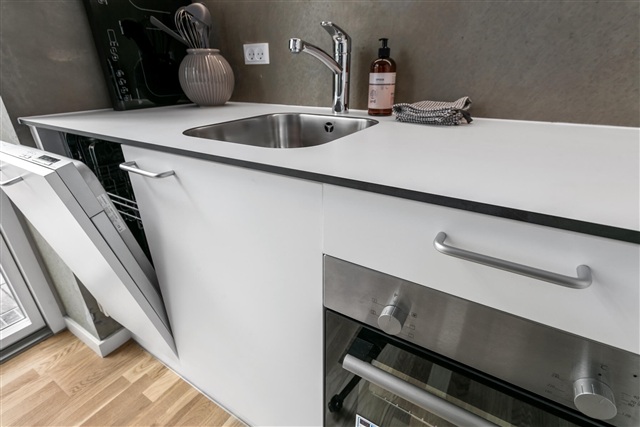 MicroLiving byder på små, studieegnede boliger, hvor hver enkelt kvadratmeter i de 1-værelses lejligheder er udnyttet til fulde. Her får du alle nødvendige funktioner samlet på en begrænset, men velplanlagt plads. Boligerne indeholder et køkken-alrum, der er udstyret med køleskab med fryseboks, ovn, kogeplade, emhætte og opvaskemaskine. Badeværelserne er lyse og moderne med elegante klinker, en separat bruseniche samt en kombineret vask- og tørremaskine. Hvert hjem byder desuden på et indrettet soveområde, som rummer det basale. Lejlighederne overdrages med hvide lamelgardiner.Bemærk, at billederne stammer fra en tilsvarende lejlighed i ejendommen. Der er ledige, tilsvarende lejligheder til leje med indflytningsmulighed efter 1, 2 eller 3 måneder. Ejendommen tilbyder praktiske fællesfaciliteter, herunder et fællesrum med køkken, toiletter og udvalg af brætspil til fri benyttelse. Cykelparkering findes både i stueetagen og kælderen, hvor der også er mulighed for at lade elcykler.