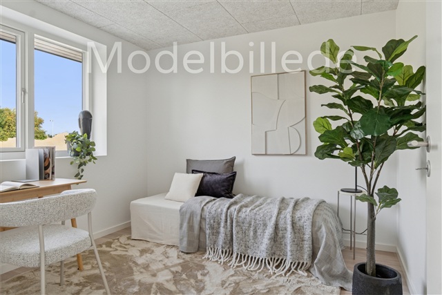 Dette moderne rækkehus på 85 m² er designet med særligt fokus på funktionalitet, lysindfald og komfort. Boligen er placeret på ét plan og udnytter pladsen effektivt, hvilket gør den velegnet til par, singler eller mindre familier, der søger et veltilrettelagt hjem med gode kvaliteter.Det centrale rum i huset er den lyse kombination af køkken, spisestue og opholdsstue, som tilsammen dækker mere end 30 m². Med skråvægge og store vinduespartier opleves rummet som både luftigt og behageligt. Her er rig mulighed for at placere både spisebord og sofa, og via udgangen får man adgang til terrassen, som forlænger opholdsarealet ud i det fri. Boligen indeholder desuden et værelse med faste skabe, som kan fungere som soveværelse, samt et ekstra rum, der kan anvendes til kontor, gæsteværelse eller børneværelse. Badeværelset er lyst og udstyret med en separat bruseniche samt vaskesøjle, mens entréen byder på praktisk opbevaringsplads.