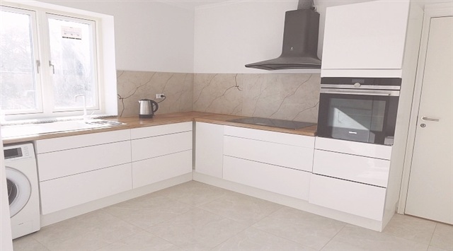 Huset er nyopført af materialer af god kvalitet og har egen P-plads og have. Indeholder stor entré med garderobeskabe og flot flisegulv. Tilstødende lækkert køkken med alle hårde hvidevarer og stilrent flisegulv. Fra entréen indgang til 2 rummelige soveværelser og opholdsstue med flotte, nye parketgulve samt flot, nyt flisebadeværelse med god skabsplads, toilet og bruseniche. Gulvvarme overalt.