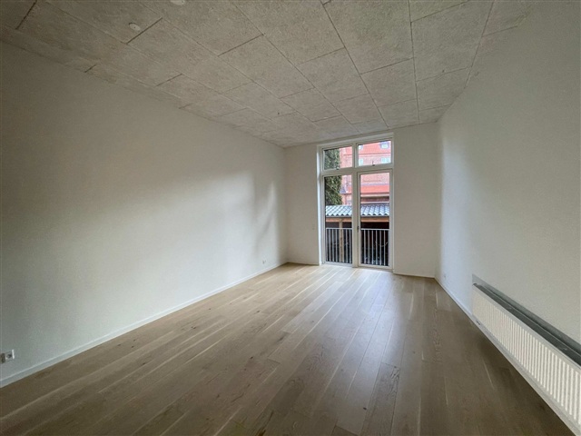 Denne lejlighed ligger centralt i Odense, midt i byens pulserende liv og tæt på banegården. Det drejer sig om en nybygget 1½-værelses bolig, som ved hjælp af en opsat rumdeler ved det, der fungerer som soveværelse, er opført som en 2-værelses lejlighed.Boligen indeholder en entré, et køkken samt en kombineret stue og soveværelse, der ligger i åben forbindelse med hinanden. Badeværelset er udstyret med både vaskemaskine og tørretumbler til privat brug. Som beboer har du adgang til en fælles tagterrasse, hvorfra du kan nyde udsigten over Odense by.