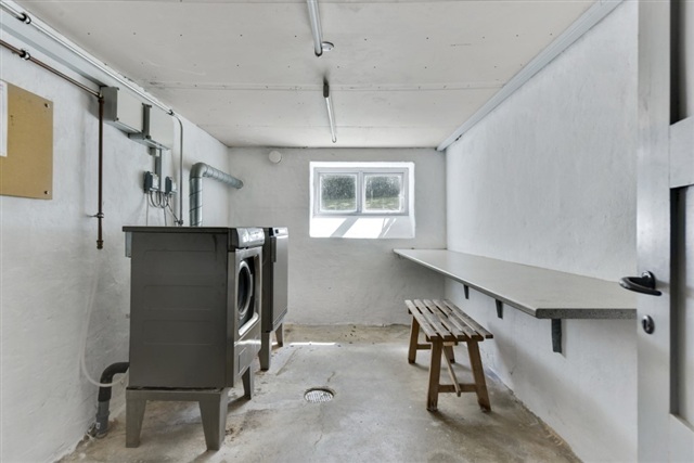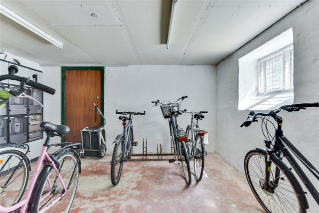 Ejendommen tilbyder gode fællesfaciliteter, herunder et industrivaskeri med vaskemaskine, tørretumbler og tørrerum, som tilgås mod betaling. Der er desuden aflåst cykelkælder og et eget større depotrum til opbevaring. Kun 30 meter fra bygningen findes store, grønne fællesarealer, der grænser op til skovområder, hvilket skaber en behagelig balance mellem byliv og natur.