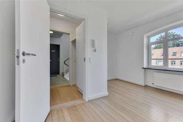 Fotosne, der vises, er fra en lignende lejlighed og skal spejlvendes for at matche denne lejlighed præcist. Til huslejen kommer et tillæg på 169 kr. om måneden, som indbetales til en konto for indvendig vedligeholdelse til istandsættelse af lejligheden ved fraflytning.