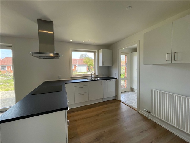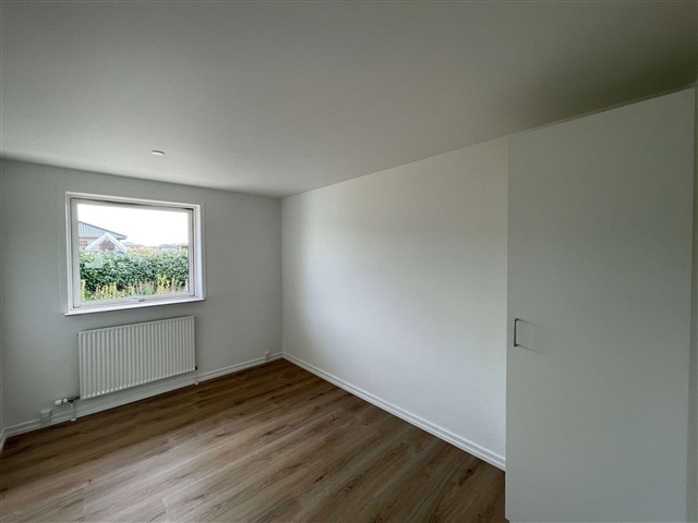 Rækkehuset, som netop er blevet gennemgribende renoveret, er beliggende i Strib. Området byder på let adgang til lokale butikker og skoler, hvilket skaber en ideel ramme for familier. De omkringliggende grønne områder og parker indbyder til rolige gåture, mens den praktiske tilknytning til offentlige transportmidler sikrer nem forbindelse til både bymidten og det nærliggende område.Indretningen omfatter en entré med bryggers, hvor både vaskemaskine og tørretumbler er installeret. Køkken og stue udgør et åbent alrum, der skaber en sammenhængende og funktionel opholdsplads. Boligen har i alt to værelser samt et soveværelse med tilhørende skabe, og der er desuden et badeværelse. Der hører en privat have til ejendommen, som indeholder en terrasse, og der er parkeringsmuligheder til rådighed.