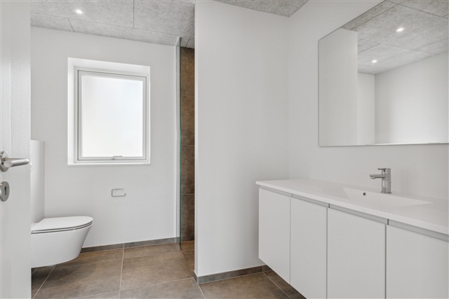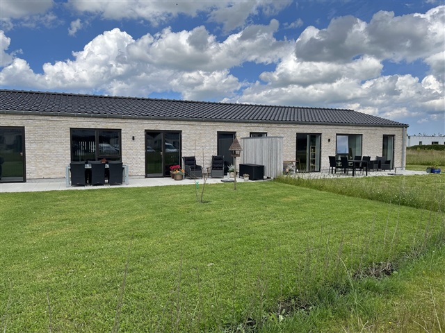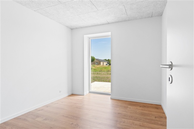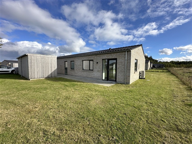 I Hjørring, på Skovvangen, findes dette energirigtige og moderne rækkehus i ét plan, som kombinerer funktionalitet med gode materialevalg. Boligarealet rummer en entré, et badeværelse med bruseniche, et stort køkken/alrum udstyret med integrerede Siemens-hvidevarer, et soveværelse med en rummelig skabsvæg samt to yderligere værelser af god størrelse. Til ejendommen hører desuden en sydvendt terrasse og have samt en privat carport og et tilhørende skur.Opvarmningen sker gennem en luft-til-vand varmepumpe, der sørger for gulvvarme, som kan reguleres separat i hver enkelt lejlighedsdel. Forberedelser til fremtidens transportforhold er lagt i form af installationer til ladestandere til el- og hybridbiler. Udvendigt er der valgt materialer, der kræver meget lidt vedligeholdelse.