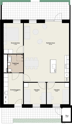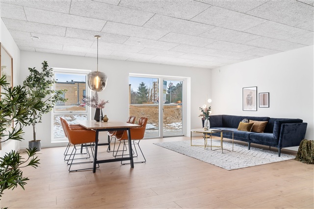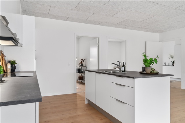I det eftertragtede område Buskelund i Silkeborg, nærmere bestemt på Sommerfugleengen, ligger dette charmerende rækkehus i et enkelt plan, som forener moderne bekvemmeligheder med funktionelle løsninger i et fredeligt kvarter. Boligen består af tre værelser, et lyst og åbent køkken-alrum, et badeværelse samt et praktisk bryggers, og er ideel for par, familier eller seniorer, der søger kvalitet og tæt kontakt til naturen.Det åbne køkken-alrum fungerer som husets hjerte, hvor køkken og stue glider sammen i ét sammenhængende rum fyldt med dagslys. Køkkenet er udstyret med alle nødvendige hårde hvidevarer, herunder opvaskemaskine, og byder på gode arbejdsoverflader med moderne materialer. Her er plads til både spisebord og sofa, og fra alrummet er der udgang direkte til terrassen, hvorfra man kan nyde fredelige, grønne omgivelser og solskin.