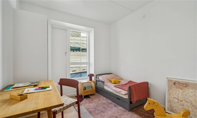 Boligen består af tre gode soveværelser, der kan indrettes fleksibelt efter behov, samt et badeværelse med separat bruseniche og plads til vaskefaciliteter. Under gulvet i hele lejligheden ligger behagelig gulvvarme.