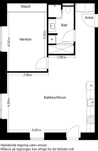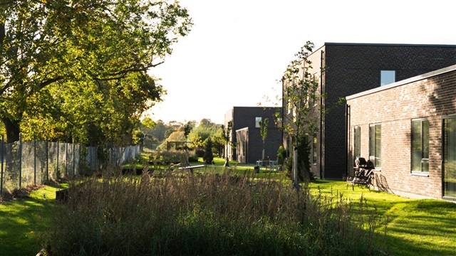 Lejligheden er rummelig og moderne indrettet med et åbent og lyst køkkenalrum som centrum. Den indeholder et værelse med integrerede skabe samt en entré, hvor der er ekstra plads til opbevaring. Køkkenet er komplet med køle-/fryseskab, opvaskemaskine, indbygningsovn, kogeplader og en emhætte. Badeværelset er lyst og indrettet med bruseniche samt vaskesøjle. Bemærk, at billederne stammer fra en tilsvarende bolig i samme ejendom.Omkring bygningerne finder man store fælles grønne områder med stier og variation af beplantning, der skaber et behageligt miljø. Beboerne kan sammen benytte fælles drivhuse, højbede og en bålplads, som alle passer og dyrker i fællesskab. Parkeringsmuligheder kan tilkøbes i naboejendommen, hvor der opføres 39 pladser.
