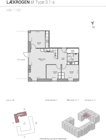 Bemærk venligst, at billeder, plantegning og tekst tjener som vejledning og derfor kan afvige fra det faktiske udseende og indretning af boligen. Det er desuden vigtigt at nævne, at personer registreret i RKI desværre ikke kan tilbydes lejligheden, hvilket kontrolleres i forbindelse med lejekontraktens udarbejdelse.