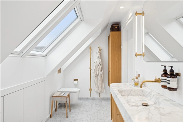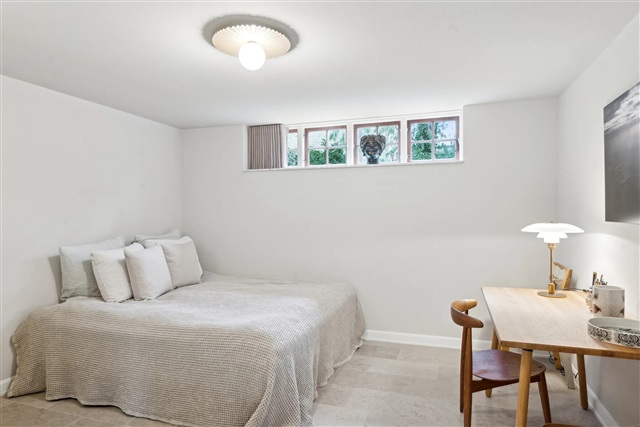 Denne unikke villa på 295 m² repræsenterer en sjælden arkitektonisk oplevelse tæt ved Bernstorffsparken. Bygningen, som stammer fra 1937, er gennemgribende moderniseret med stor respekt for dens oprindelige klassiske stil og udført med materialer af høj kvalitet, der vægter både æstetik, funktionalitet og komfort højt.Boligen fordeler sig på tre niveauer. I stueetagen mødes man af en smuk entré med gæstetoilet, en elegant opholdsstue udstyret med pejs samt en repræsentativ spisestue, som ligger i forlængelse heraf. Køkken og alrum er opført i lækre materialer og har direkte adgang til et grovkøkken, hvor der blandt andet er installeret vinkøleskab. Førstesalen byder på to rummelige soveværelser med skrå lofter og indbyggede skabe samt et eksklusivt badeværelse med bruser. Underetagen rummer et luksuriøst badeværelse med badekar, et bryggers samt to omfattende disponible rum, hvoraf det ene er forsynet med pejs - velegnet til ekstra værelser, kontor eller teenagerafdeling.