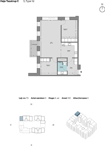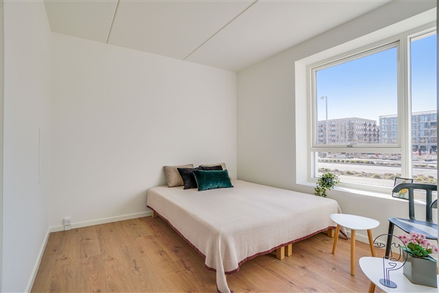 På Bornholms Alle, centralt placeret i Høje Taastrup, udbydes en række lejligheder, der egner sig til en bred gruppe af lejere, herunder bofæller, par, singler og mindre familier. Samtlige boliger består af tre værelser og står klar til indflytning med en lys og venlig indretning, der skaber en harmonisk sammenhæng mellem indretning og beliggenhed. Lejlighederne er indrettet i ét plan og tilbyder enten altan eller terrasse som udendørsareal. Til hver bolig hører desuden et kælderrum på mellem 2 og 4 m² til opbevaring. Alle enheder er udstyret med et komplet udvalg af hårde hvidevarer, herunder køle- og fryseskab, indbygningsovn, kogeplade, emhætte, opvaskemaskine samt både vaskemaskine og tørretumbler.Ejendommen består af 101 lejligheder og har elevator. Bedriftsdyr er tilladt med en grænse på to dyr pr. bolig, uden restriktioner på dyrenes størrelse. Opvarmningen sker via gulvvarme med fjernvarme som energikilde. Internettet leveres af TDC Fibernet. For beboerne er der mulighed for at erhverve en af de 52 parkeringslicenser til parkeringshuset ved siden af ejendommen, og cykler kan parkeres i cykelstativer placeret i kælderen. Til fælles glæde findes et orangeri på tagterrassen samt en legeplads i gården.