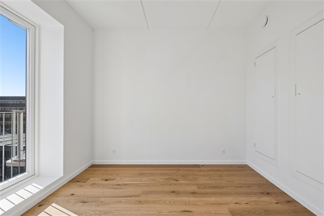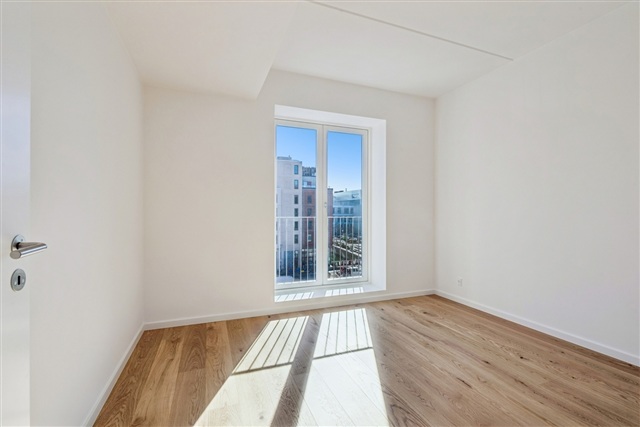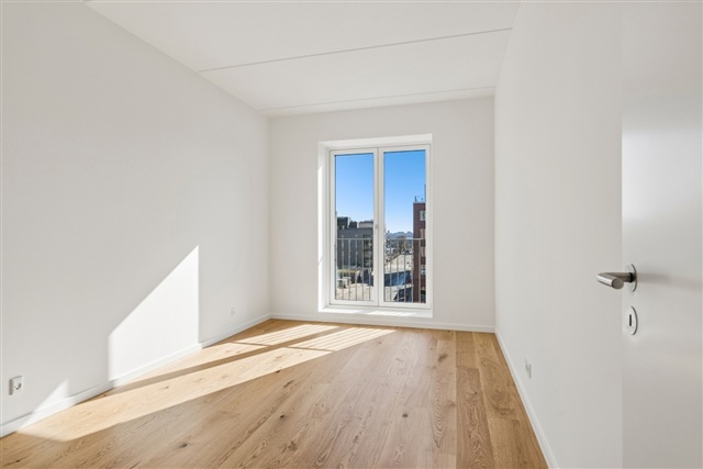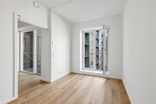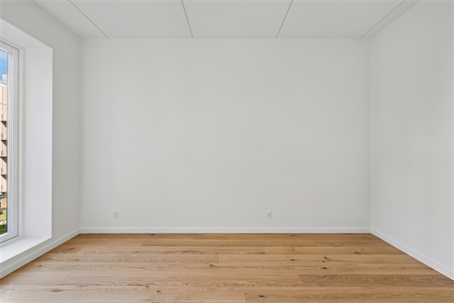 Lejligheden, der er nybygget, fremstår med et rent og indflytningsklart udtryk samt en veltilrettelagt planløsning, hvor moderne elementer går igen i hele boligen.Det store opholdsrum udgør boligens centrale samlingspunkt, hvor køkken og stue er samlet i en åben og sammenhængende enhed. Køkkenet er designet i et tidløst formsprog og er udstyret med alle nødvendige hårde hvidevarer. De rummelige vinduespartier bringer et flot naturligt lys ind, hvilket bidrager til en luftig og behagelig atmosfære.