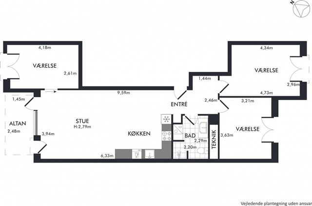 Nyopført lejlighed med altan og tre gode soveværelser