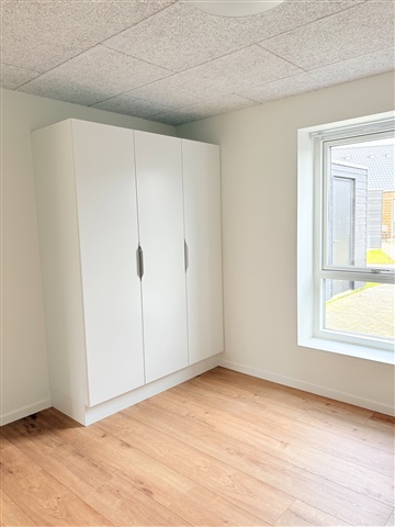 På Birksvej præsenteres et attraktivt rækkehus, hvor en stille farvepalet, moderne design og et behageligt dagslys smelter sammen til en harmonisk helhed. Dette hjem er tænkt som en enkel og funktionel bolig, der imødekommer dagligdagens behov i et område præget af tryghed, fællesskab og grønne omgivelser.Boligens hjerte udgøres af et åbent køkken-alrum, der samler madlavning, samvær og afslapning i ét rum. Køkkenet er udført i lyse materialer og udstyret med hvidevarer af høj kvalitet. Store vinduespartier sørger for et naturligt lysindfald, og rummet er tilrettelagt, så både spiseplads og et komfortabelt sofaområde får hver sin naturlige plads. Derudover byder boligen på et lyst soveværelse med faste skabe samt et ekstra værelse, der kan anvendes som børneværelse, kontor eller gæsteværelse - begge enkle og nemme at indrette efter individuelle behov.