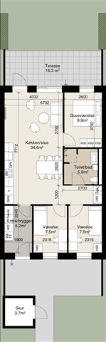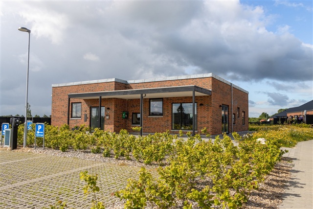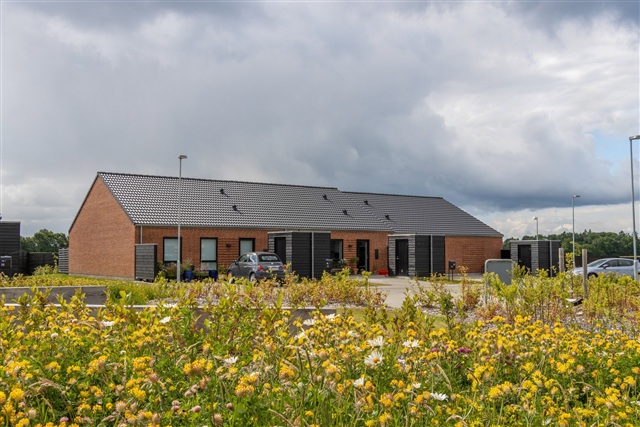 Fra køkken-alrummet er der udgang til en privat terrasse, der rummer god plads til at opholde sig i solen, lege eller invitere familie og venner til samvær. Foran huset findes både et privat redskabsskur, en reserveret parkeringsplads samt et mindre flisebelagt område, som er velegnet til et cafébord og dekorative krukker med planter. Her er også mulighed for at montere en personlig ladestander til elbil.