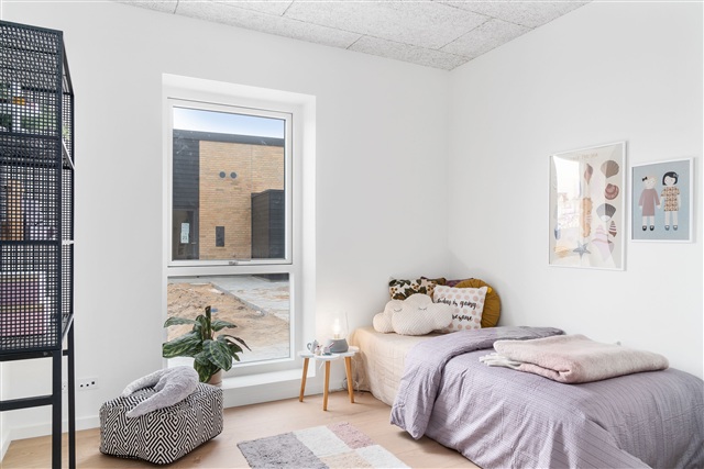 Rækkehuset indeholder tre værelser, hvoraf det største egner sig som hovedsoveværelse og er forsynet med to faste garderobeskabe. De to øvrige værelser ligger ved siden af hinanden og begge har faste skabe. Værelserne kan anvendes som børneværelser, kontor eller gæsteværelser alt efter behov.