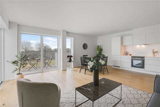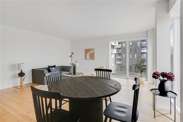 Denne attraktive 2-værelses lejlighed byder på en gennemtænkt og indbydende indretning, som egner sig særligt godt til enten en enkeltperson eller et par. Køkkenet fremstår i et elegant og tidløst hvidt design med integrerede hårde hvidevarer, og de gode arbejdsarealer gør madlavningen både enkel og behagelig. Den åbne forbindelse til stuen sikrer en naturlig mulighed for kontakt og fællesskab, så man kan deltage i samtalerne, imens måltiderne forberedes. Badeværelset er lyst og tiltalende, præget af smagfulde materialevalg, og indeholder desuden en praktisk vaskesøjle.Lejligheden har en eftertragtet placering, hvor man får det bedste fra både byliv og natur. Øresund Station ligger blot cirka 600 meter væk, hvilket muliggør hurtig og bekvem adgang til København og omegn. Dagligvareindkøb kan klares tæt på boligen, og området har både skole og daginstitution inden for kort rækkevidde. Derudover byder den nærliggende kystlinje og de grønne stisystemer på gode muligheder for både løbe- og gåture langs vandet eller en svømmetur på varme sommerdage.