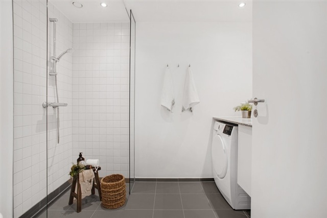 Stuen vender ud mod en lang, men en smule smal altan, som jeg planlægger at indrette til hyggelige morgener med kaffe, læsestunder, vin, solnedgange og lignende. Min egen værelse har direkte udgang til terrassen, som ligger i tilknytning til gården. I lejligheden findes både opvaskemaskine, vaskemaskine og tørretumbler, hvilket bidrager til en god hverdag.