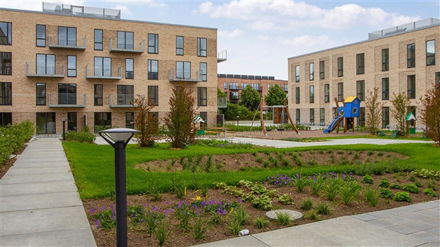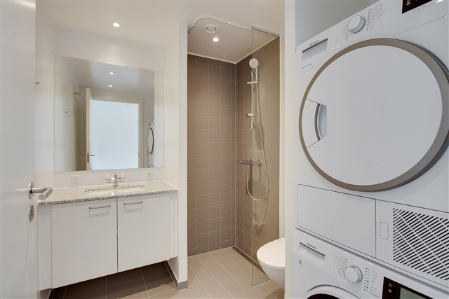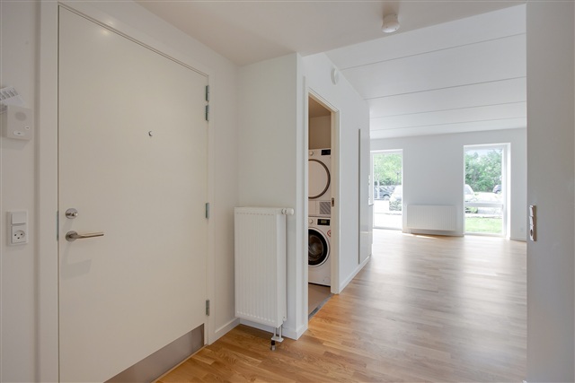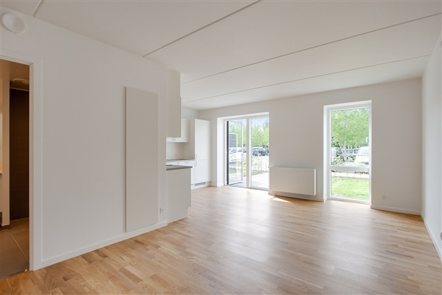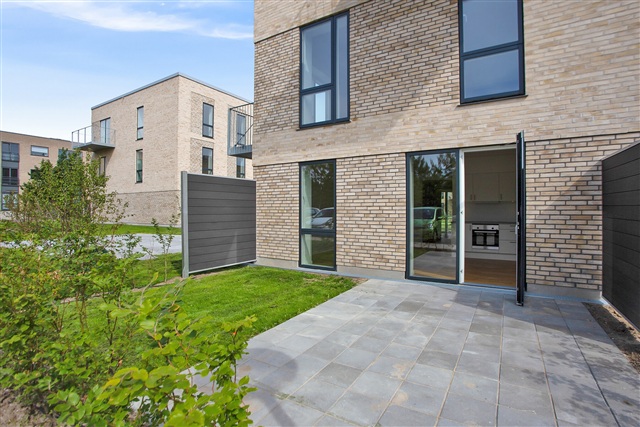 Lejligheden fremstår moderne og rummer en privat terrasse, som er integreret direkte med det lyse og åbne køkkenalrum. Køkkenet er fuldt udstyret med køle-/fryseskab, opvaskemaskine, indbygningsovn, kogeplader samt emhætte. Soveværelset er rummeligt og har indbyggede skabe til opbevaring. Badeværelset er ligeledes moderne og indeholder både vaskemaskine og tørretumbler. Til lejligheden hører desuden et praktisk depotrum.Ejendommens grønne gårdmiljø er hyggeligt med træer og velplejet beplantning, hvor en stor legeplads giver gode muligheder for børnene at lege, og der findes også en basketballbane. Parkeringsmulighederne er gode med fri parkering ved ejendommen samt overdækket cykelparkering. Boligen ligger centralt i Taastrup, hvilket gør det nemt for en lille familie at komme til indkøb, skoler og daginstitutioner. Der er også nem adgang til offentlig transport, herunder S-tog, samt til motorvejen. Afstanden til København er kun 20 km, hvilket betyder, at byens mange muligheder hurtigt kan nås. I nærområdet ligger City 2 med et bredt udvalg af butikker, take-away og indkøbsmuligheder.