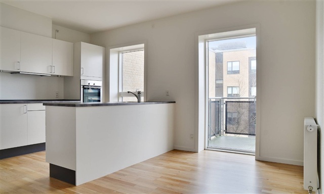 Denne lejlighed er skabt med fokus på gennemført design og funktionalitet, hvor ikke en detalje er overladt til tilfældighederne. Ved indgangspartiet møder du en åben entré, der er udstyret med et indbygget skab, som giver rig mulighed for opbevaring af sko, overtøj og andre nødvendigheder. Badeværelset gør sig bemærket som et lyst og rummeligt rum med moderne faciliteter, der skaber en behagelig ramme for både morgenrutiner og afslapning efter dagens strabadser, alt i en stilfuld atmosfære. Lejlighedens store opholdsstue fungerer som hjemmets samlingspunkt med plads til både afslapning og socialt samvær. Herfra er der direkte adgang til det væsentligt store soveværelse, der også indeholder et rummeligt indbygget skab, ideelt til opbevaring af tøj og personlige ejendele. Køkkenet er funktionelt og elegant med moderne hårde hvidevarer og en køkken-ø, som danner et naturligt omdrejningspunkt for madlavning og fælles aktiviteter. Fra køkkenet har man adgang til et praktisk depotrum med plads til opbevaring samt en vaskemaskine, hvilket gør de daglige huslige pligter mere overskuelige.Det skal bemærkes, at billederne kan stamme fra en anden bolig i ejendommen, hvilket betyder, at indretning, udsigt og beliggenhed kan afvige. For præcis indretning henvises der til plantegningen for denne lejlighed.