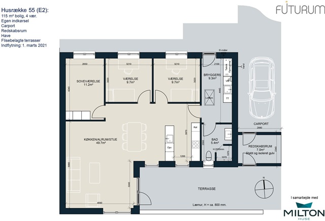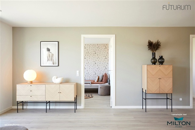 Alt forbrug afregnes direkte mellem lejer og de respektive forsyningsselskaber, og opvarmningen sker via fjernvarme. Parkering foregår i tilknytning til boligen i carporten. Illustrationsbillederne er modelfotos, og der tages forbehold for eventuelle ændringer.