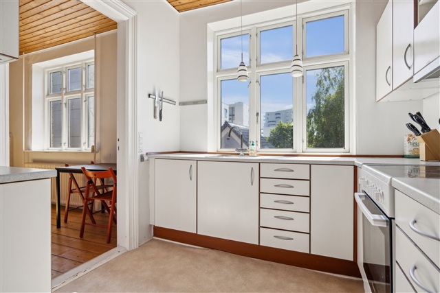 Denne velholdte lejlighed med fire værelser har en dejlig altan og er placeret på Vestergade i hjertet af Nørresundby, kun få minutters gang fra Torvet. Her har du let adgang til offentlig transport og dagligvareindkøb lige uden for døren. På blot fem minutter på cykel når du Aalborg centrum via Kulturbroen.Boligen rummer i alt 120 kvadratmeter og indeholder tre behagelige værelser samt en stue. Køkkenet er åbent og fyldt med naturligt lys, hvilket skaber en lys og indbydende atmosfære. Badeværelset fremtræder moderne og er udstyret med både vaskemaskine og tørretumbler. Altanen vender mod øst, hvilket gør den ideel til at nyde morgenkaffen i de tidlige timer.