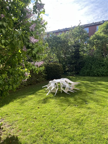 Ejendommen råder over en dejlig, grøn gårdhave, hvor der er mulighed for at nyde en kop kaffe, læse en bog eller tage en pause og få frisk luft. Cykler kan parkeres sikkert i den private gård, og der er desuden adgang til fælles vaskefaciliteter.