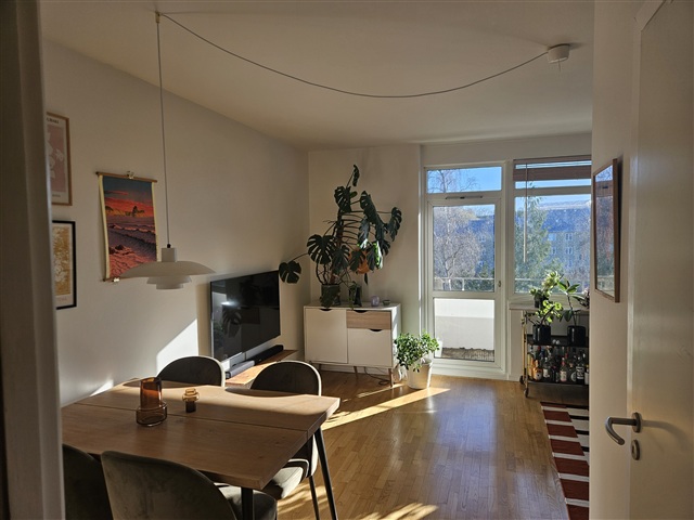 Hyggelig og lys lejlighed på 50 m² i et roligt område, kun 2 min fra Kildebakke Station og under 20 min til Nørreport.Lejligheden ligger på øverste etage og har en virkelig dejlig sydvestvendt altan med sol det meste af dagen og udsigt til grønne omgivelser. Stuen er lys og indrettet hyggeligt med god plads til både sofa og spisebord. Der er også adgang til en stor fælles have.