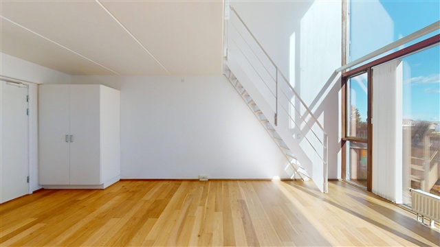 Denne lejlighed byder på et lyst og rummeligt køkken-alrum, hvor de store vinduespartier lader et smukt og naturligt lys strømme ind, hvilket skaber en levende stemning gennem hele boligarealet. Fra opholdsrummet er der udgang til en rummelig altan, som er perfekt til både morgenkaffen og til at nyde de lange sommeraftener.Derudover rummer boligen et komfortabelt soveværelse samt en stor hems, der tilfører ekstra plads og fleksibilitet efter behov. Hemsen kan for eksempel fungere som hjemmekontor, et hyggeligt opholdsområde eller en gæsteseng - mulighederne er mange og kan tilpasses efter ønsket anvendelse.