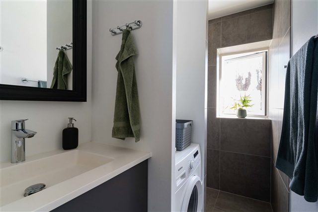 Ejendommen ligger omgivet af store, grønne fællesarealer, som bidrager til en rolig og behagelig atmosfære omkring boligen. I kælderen findes desuden cykelparkering og et rum til tørring af tøj.