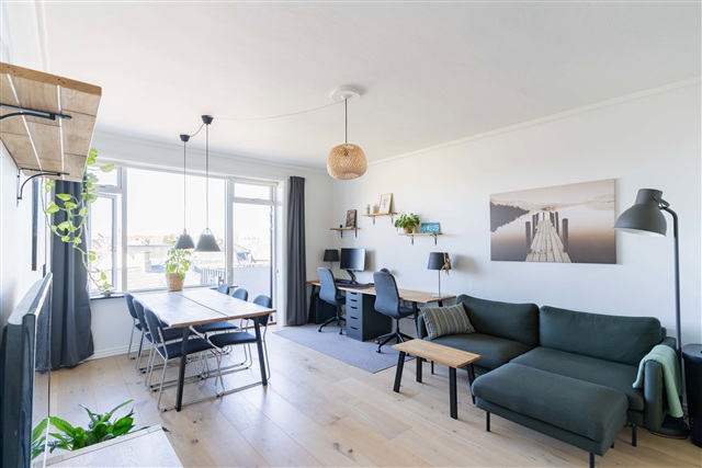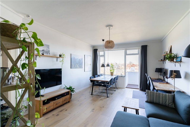 Denne øverst beliggende lejlighed i Hellerup byder på 61 m² fordelt på to værelser og er netop nyrenoveret, klar til indflytning fra den 1. juli 2026. Boligen fremstår velholdt med moderne materialer og præsenterer en lys og indbydende stemning.Lejligheden udlejes fuldt møbleret og har en praktisk og velgennemtænkt indretning. Fra den rummelige stue, som har adgang til en altan med vestvendt orientering, opnår man direkte forbindelse til soveværelset både via køkkenet og stuen, hvilket giver en sammenhængende og fleksibel planløsning. Badeværelset er pænt og velholdt, udstyret med vaskemaskine, og der vil blive installeret en tørretumbler over maskinen inden indflytning. Desuden er der adgang til fællesvaskeri i ejendommen.