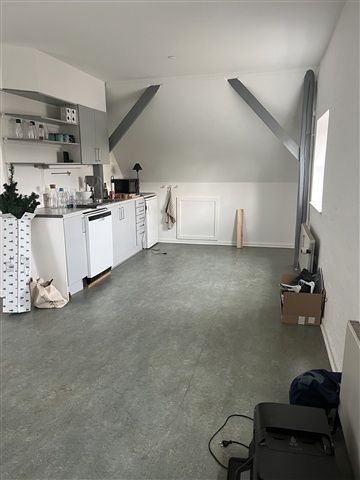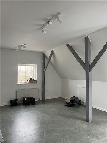 Hyggelig erhvervs lejemål i det gamle mejeri i Beder på 1 sal med godt lysindfald ,og fritliggende bjælkerDer er køkken med enkelte køkkenfaciliteter, såsom opvaskemaskine og køleskab dertil nyrenoveret badeværelse.