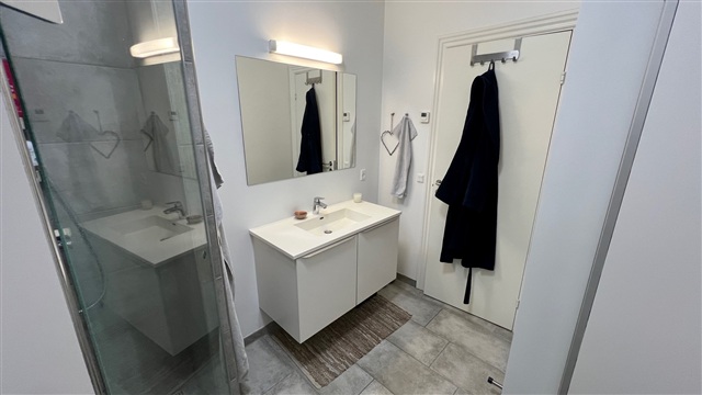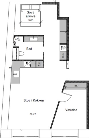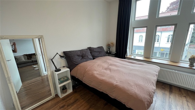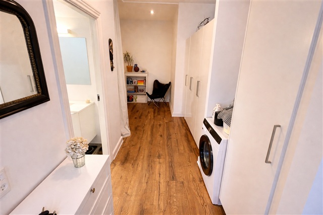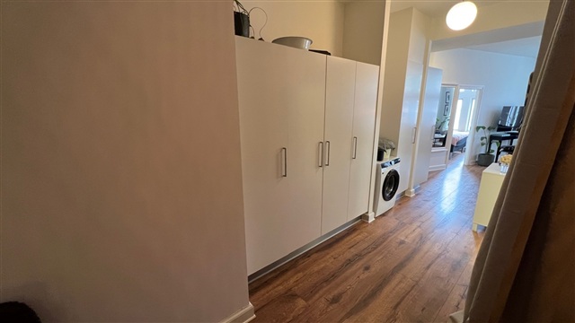 Denne lejlighed i THE WHITE HOUSE ligger blot 100 meter fra gågadens centrum og byder på en indretning, der omfatter et kombineret stue- og køkkenmiljø, to værelser, hvoraf det ene er en alkove uden dør, samt et badeværelse. Dertil hører også et privat depotrum placeret i ejendommens opvarmede kælder. Boligen er udstyret med et ventilationsanlæg og en dørtelefon med kamerafunktion. Køkkenet er indrettet med HTH-inventar, køle-fryseskab, pyrolyseovn, induktionskogeplade og en rustfri opvaskemaskine samt installationer til vaskesøjle og tørretumbler.Det skal bemærkes, at et af værelserne fungerer som en alkove, hvilket betyder, at det ikke har en dør. Husdyr kan accepteres efter aftale. Parkering kan ske i et lejet, fast område bag ejendommens bagmur, og der er 11 kW el-ladestandere til elbiler installeret på matriklen via Clever.
